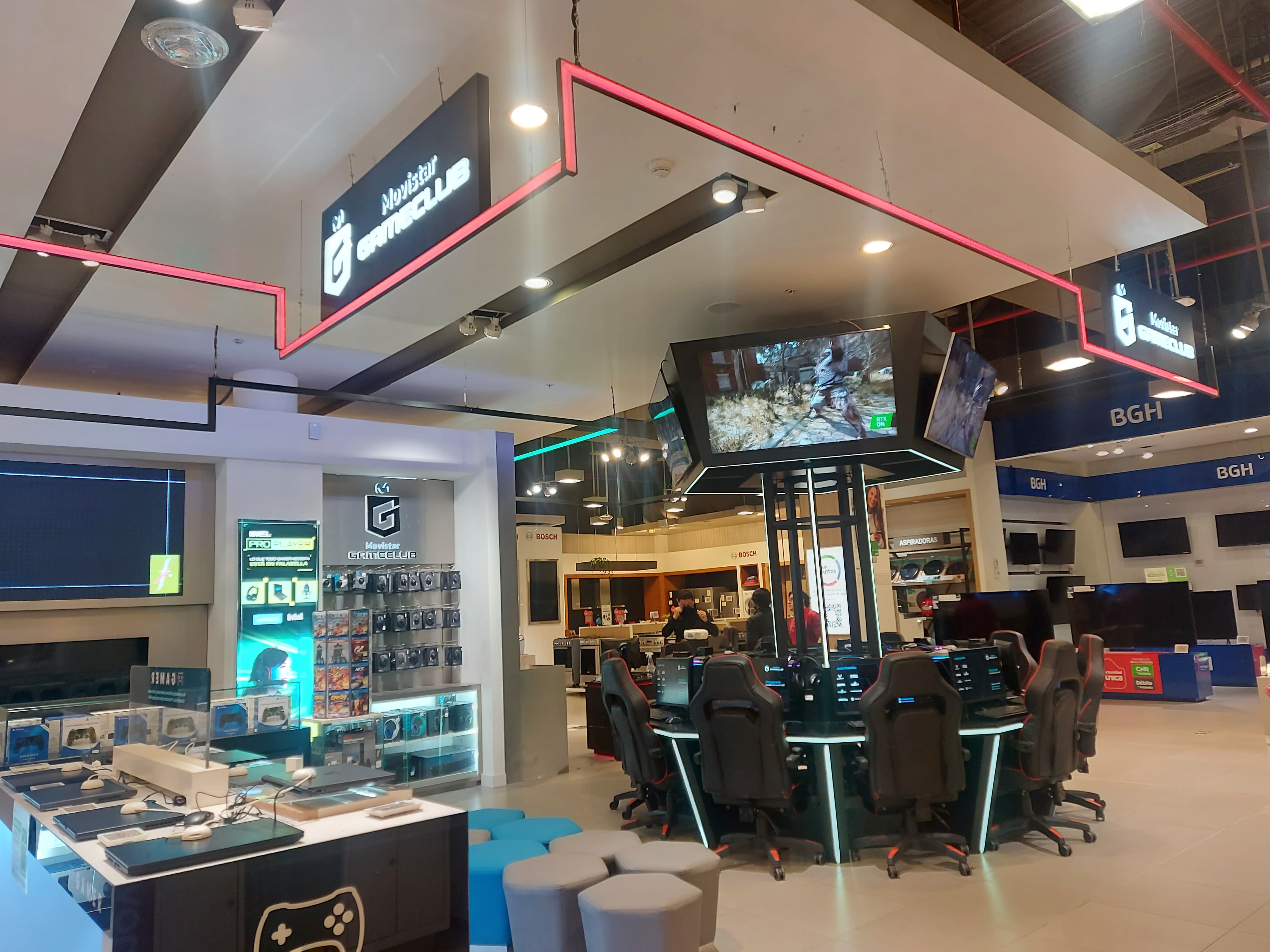Para este proyecto realizamos el rollout de la marca Movistar Gameclub mejorando su primer diseño e integrándolo a los espacios asignados por Negocios.