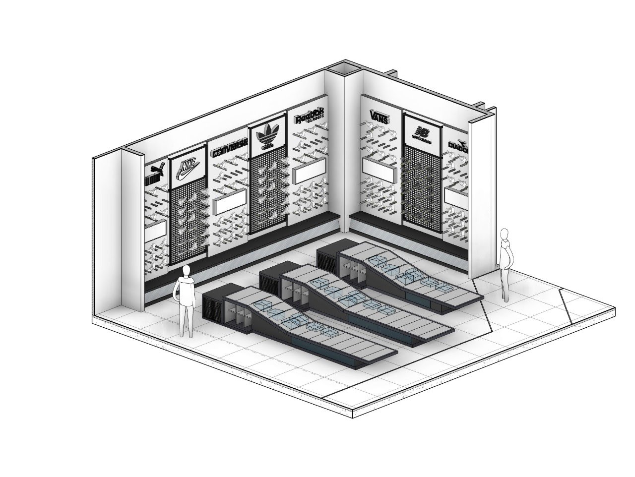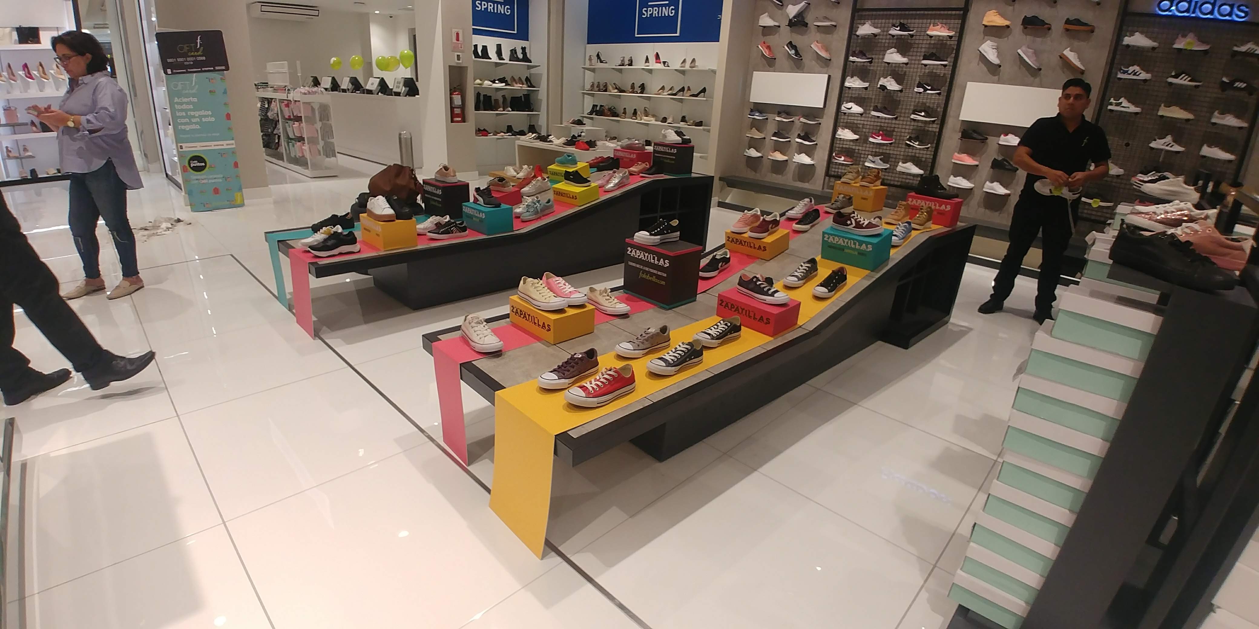 Encargados del diseño y cambio de imagen del área de calzado urbano, diseñamos este proyecto basados en la experiencia de venta de nuestro cliente, acercando el producto a la vista y llegada de los posibles compradores.