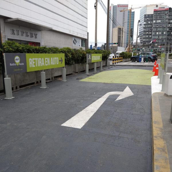 Se realiza una remodelación de la zona de estacionamientos de Falabella Begonias y se adapta un pórtico de acceso vehicular con una mejor distribución en piso de los estacionamientos para facilitar el recorrido del flujo vehicular y funcione de manera eficiente la operatividad de dicho proyecto.