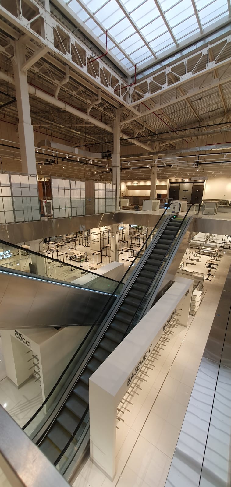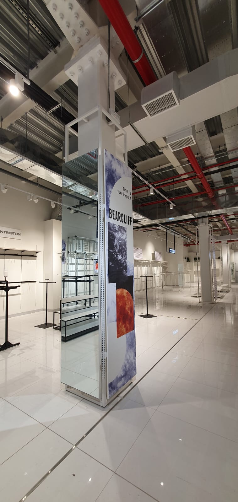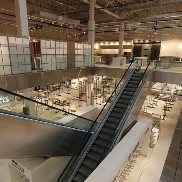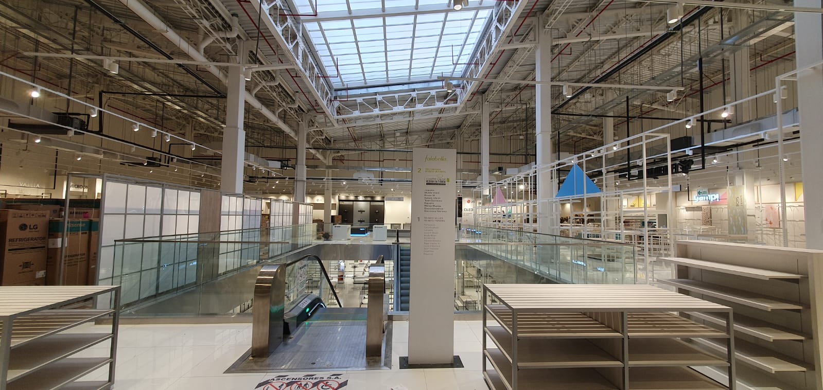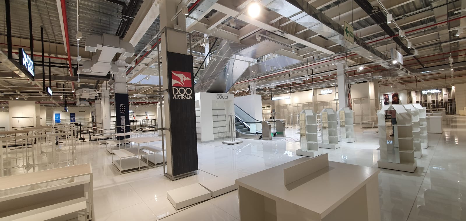 Se diseñaron elementos ligeros con estructuras metálicas en blanco y negro resaltando cada marca con logos iluminados y visuales de marcas.